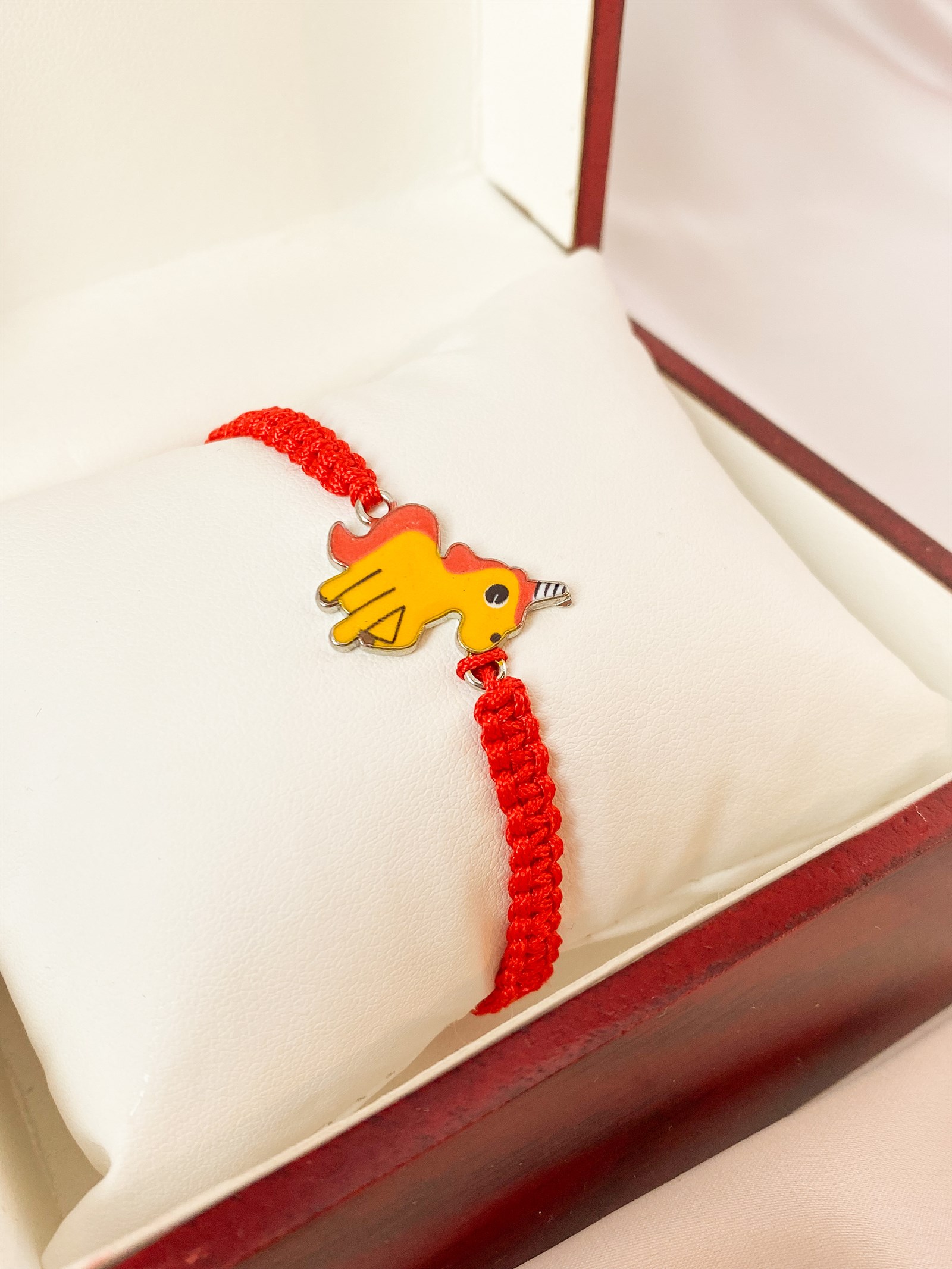 Яркая красная нить с подвеской в виде единорога. Для больших и маленьких модниц.