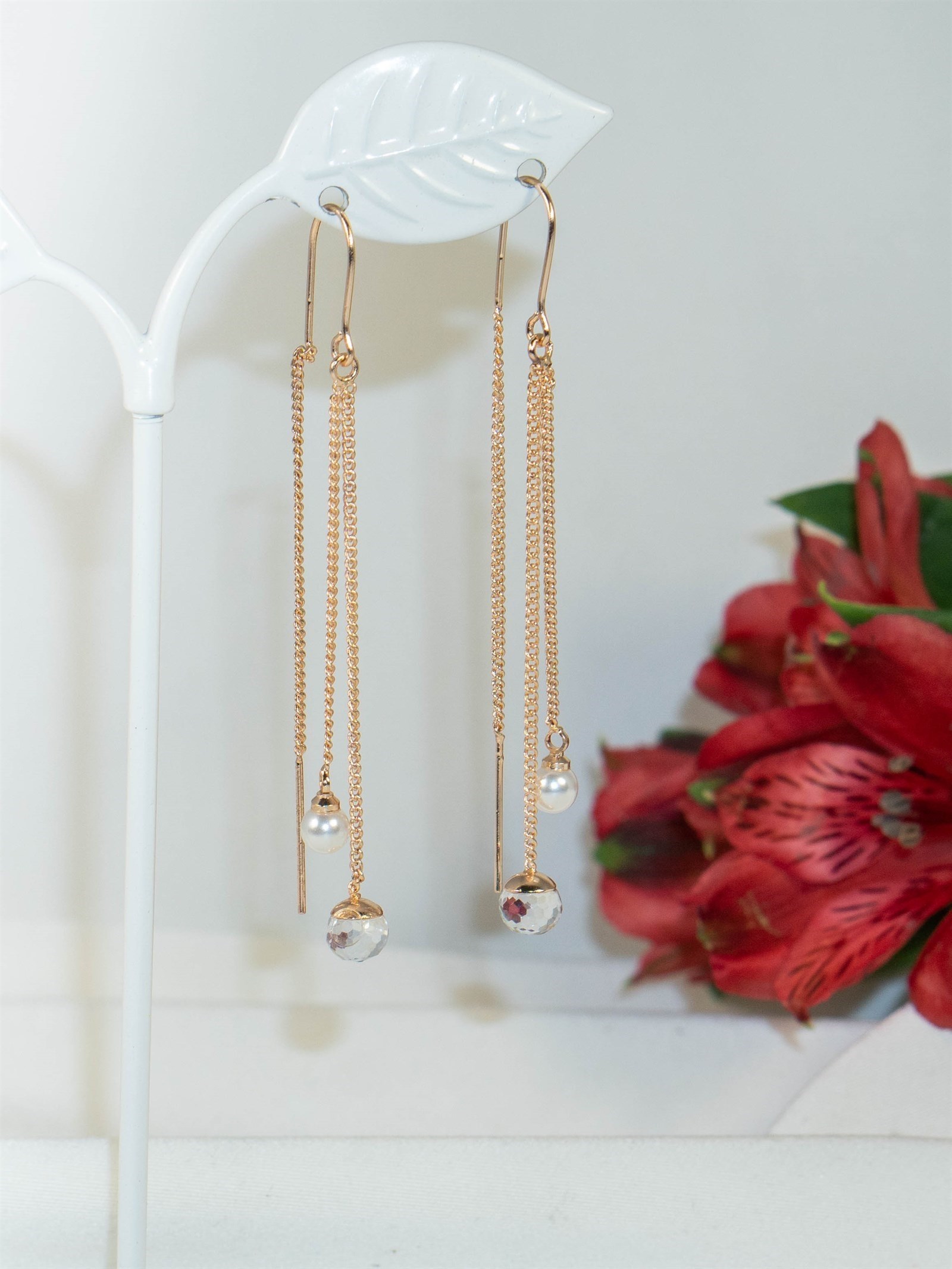 Изящные серьги-продевки из дубайского золота с жемчугом.