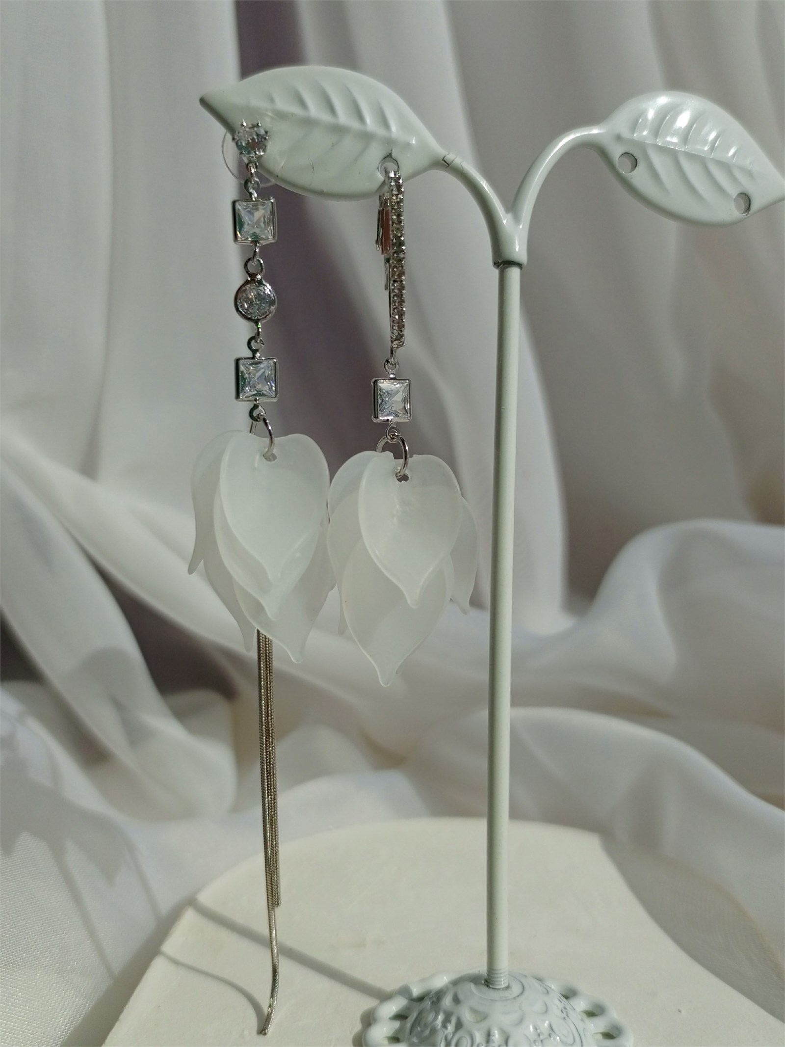 Невесомые серьги из дубайского серебра с лепестками из акрила
