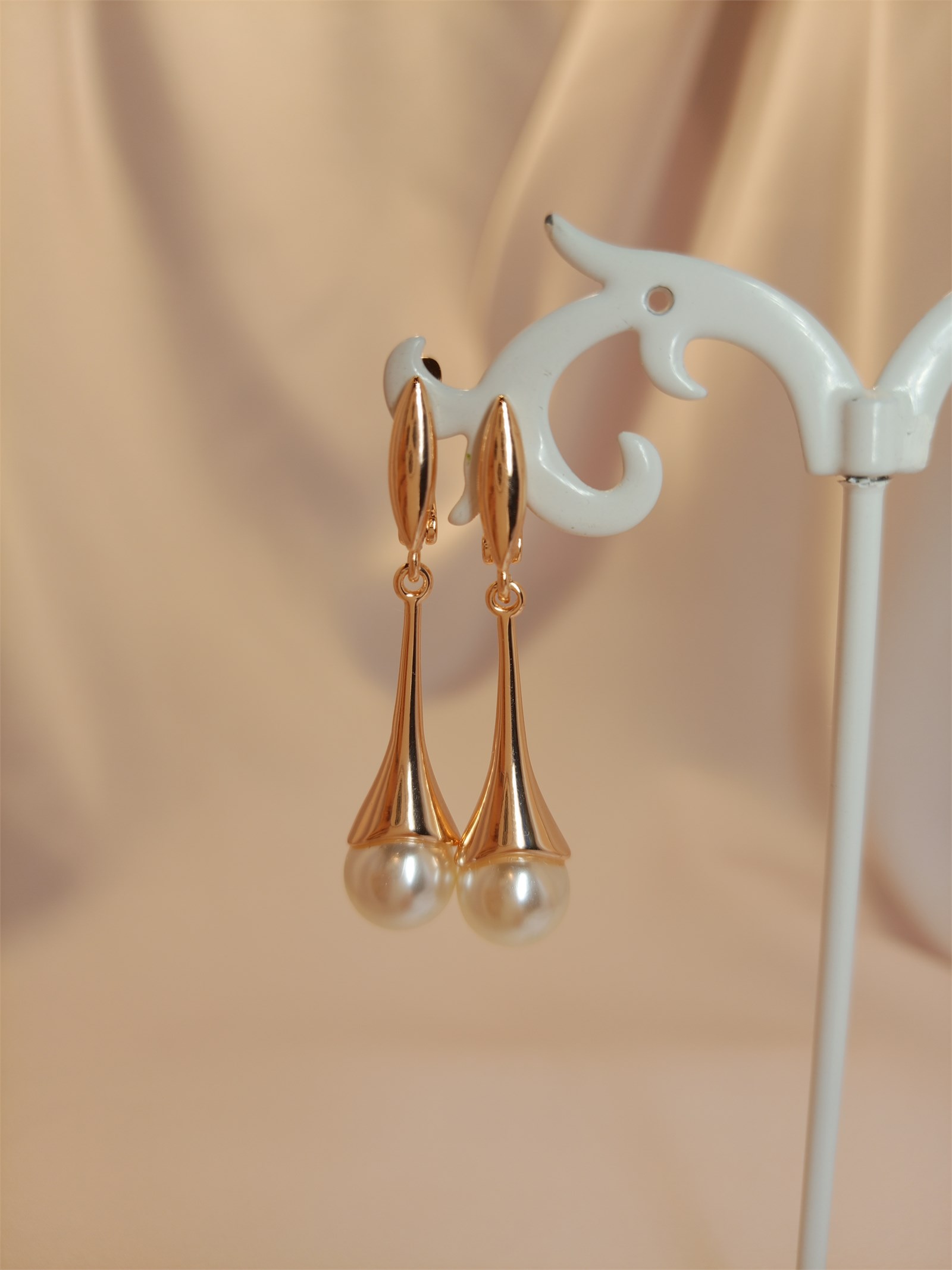 Нежные серьги из дубайского золота с жемчугом