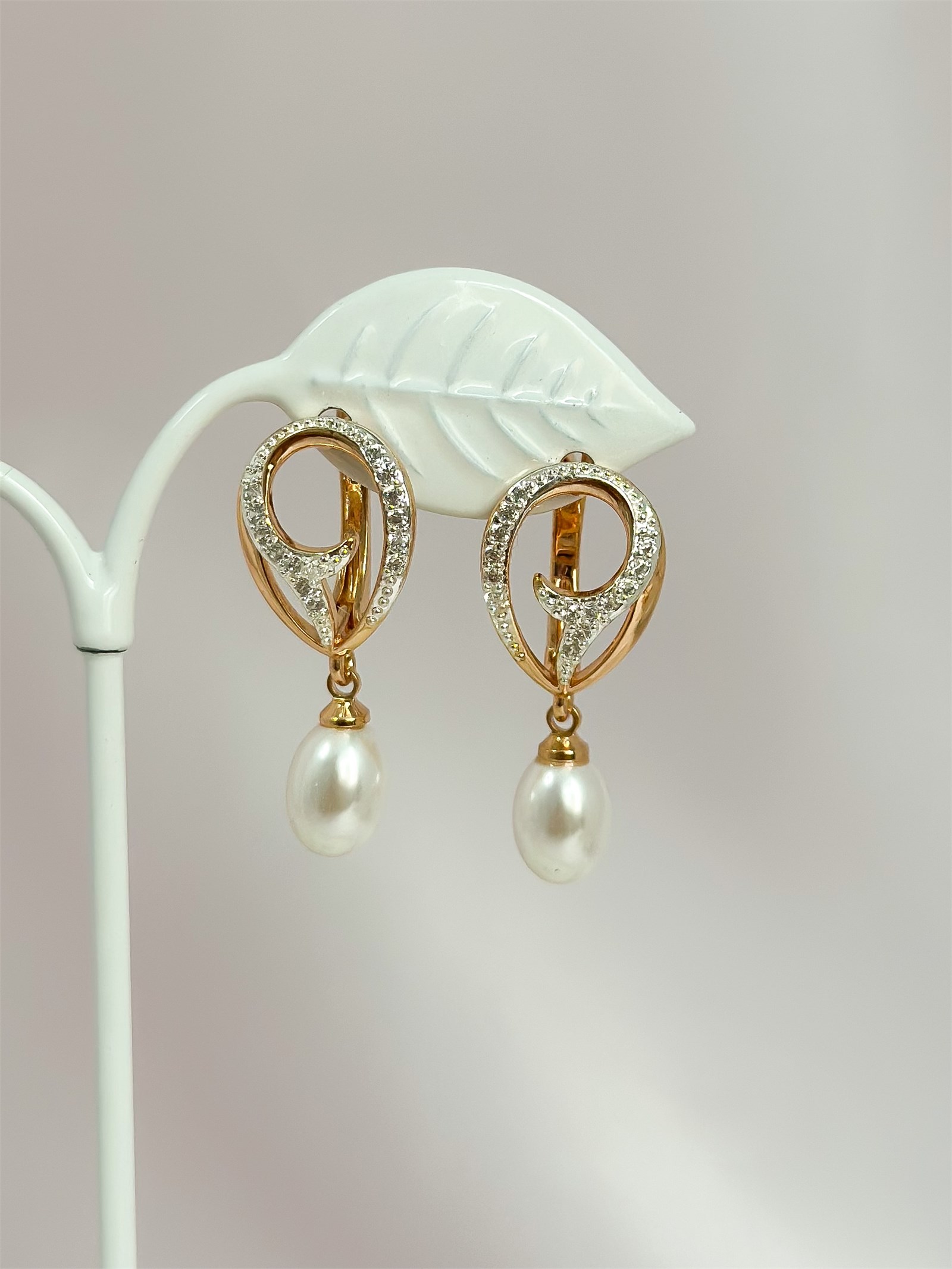 Роскошные серьги из дубайского золота с жемчугом