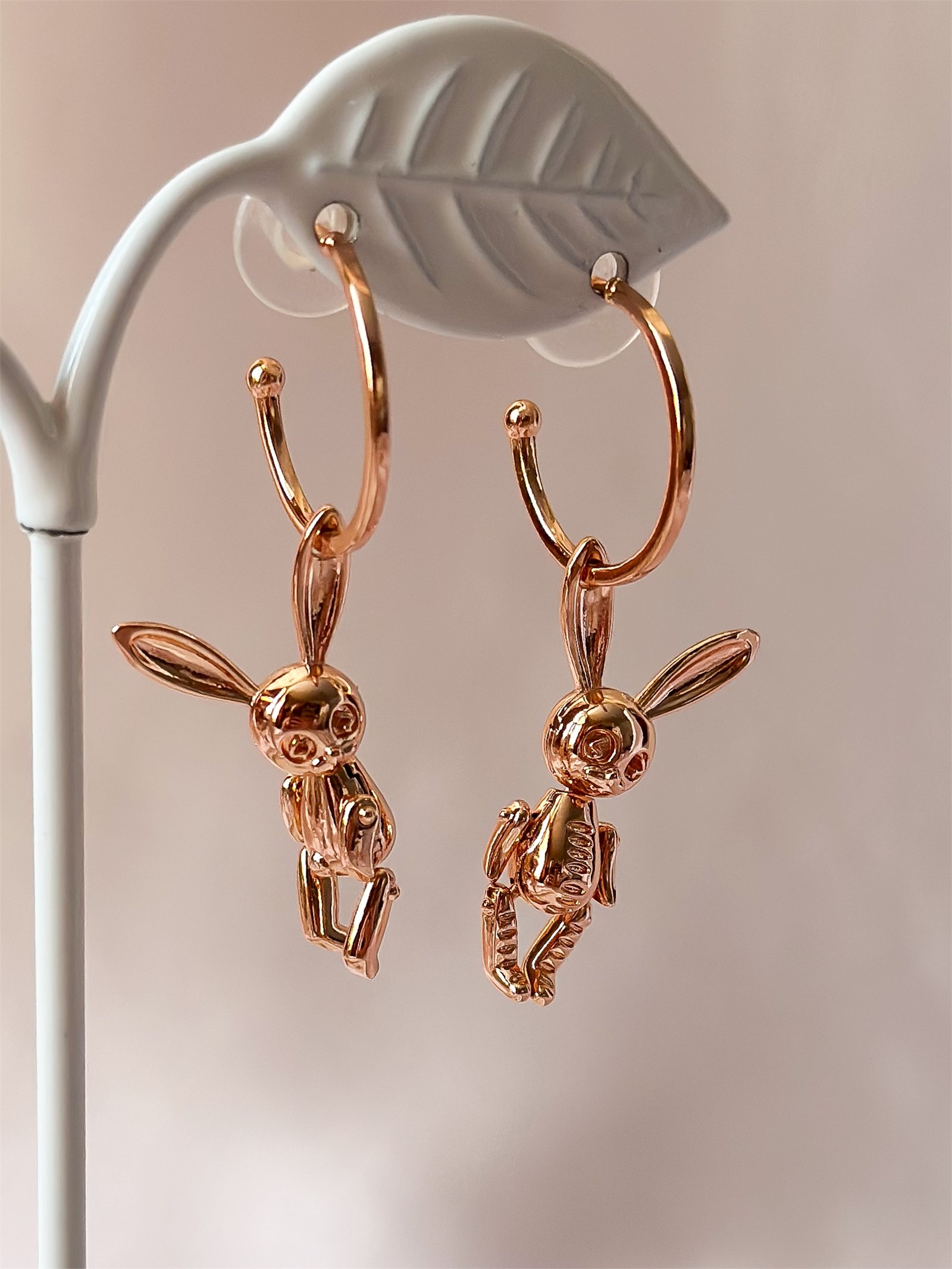Ручки, ножки и туловище зайчиков двигаются. Зайчиков можно снять и носить серьги-кольца отдельно.