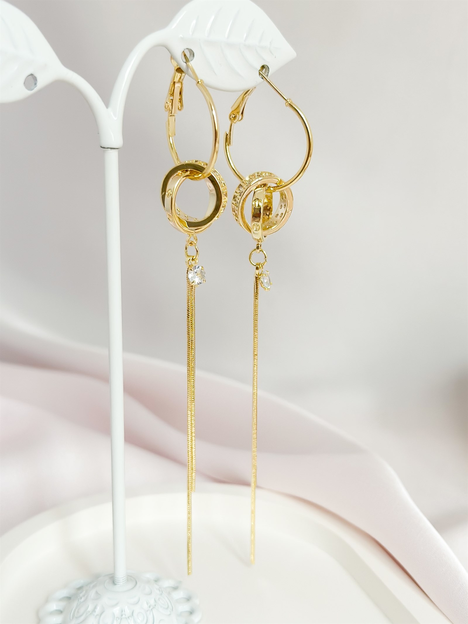 Великолепные серьги-кольца из дубайского золота с подвесками