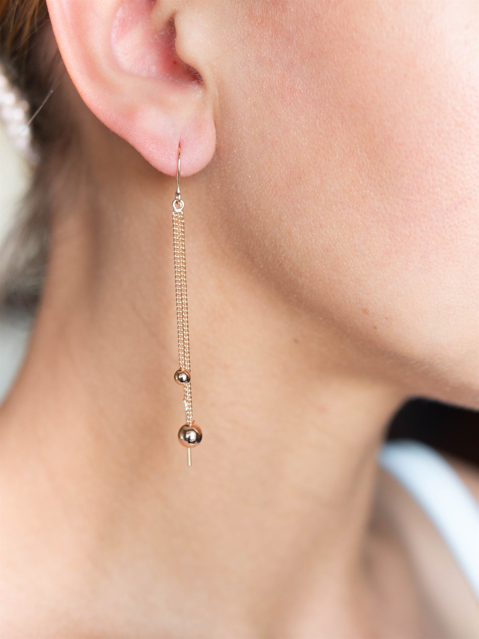 Очаровательные серьги-продевки из дубайского золота с шариками.
