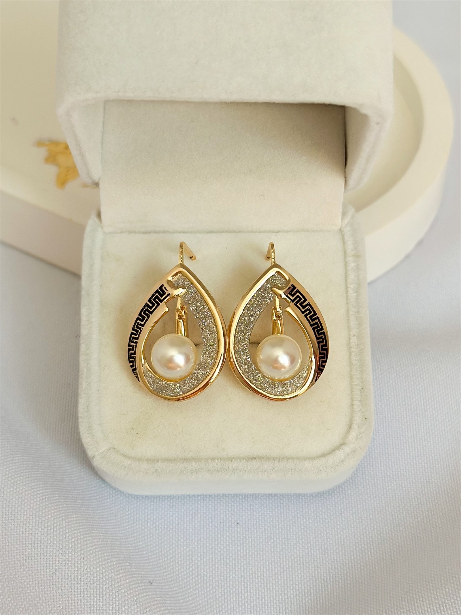 Великолепные серьги из дубайского золота с жемчужиной
